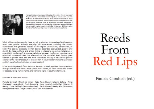 In her anthology Reeds from Red Lips, Pamela Chrabieh explores these questions through stories told from a wide spectrum of voices, all from authors and artists who dream of peacebuilding, human rights, and women’s rights in Southwestern Asia. Stories are told through poetry and prose in English, French, Modern Standard Arabic and Lebanese, and through a selection of conceptual photography artworks, digital visuals, cartoons and paintings.