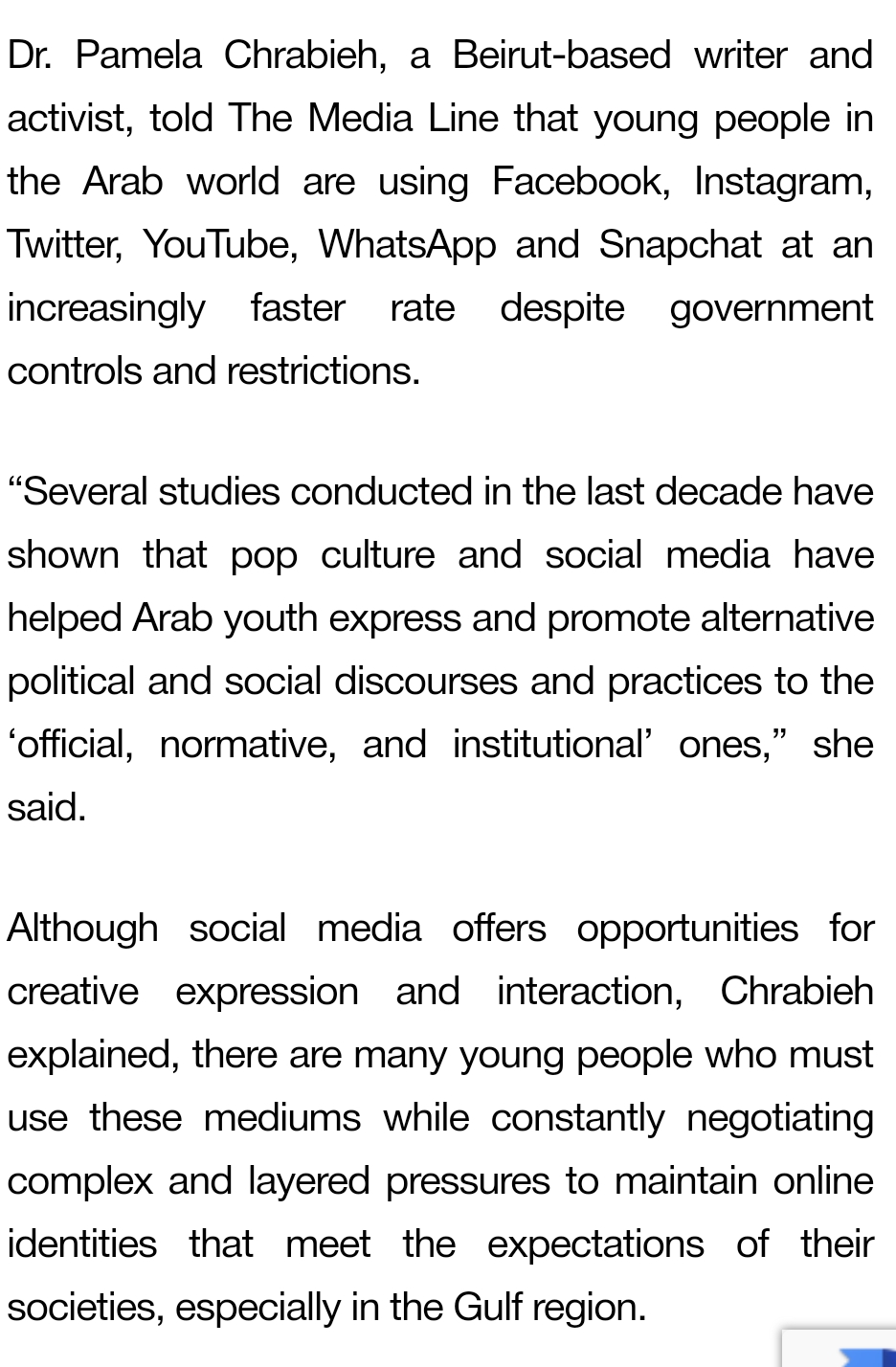 Although social media offers opportunities for creative expression and interaction, Chrabieh explained, there are many young people who must use these mediums while constantly negotiating complex and layered pressures to maintain online identities that meet the expectations of their societies, especially in the Gulf region.