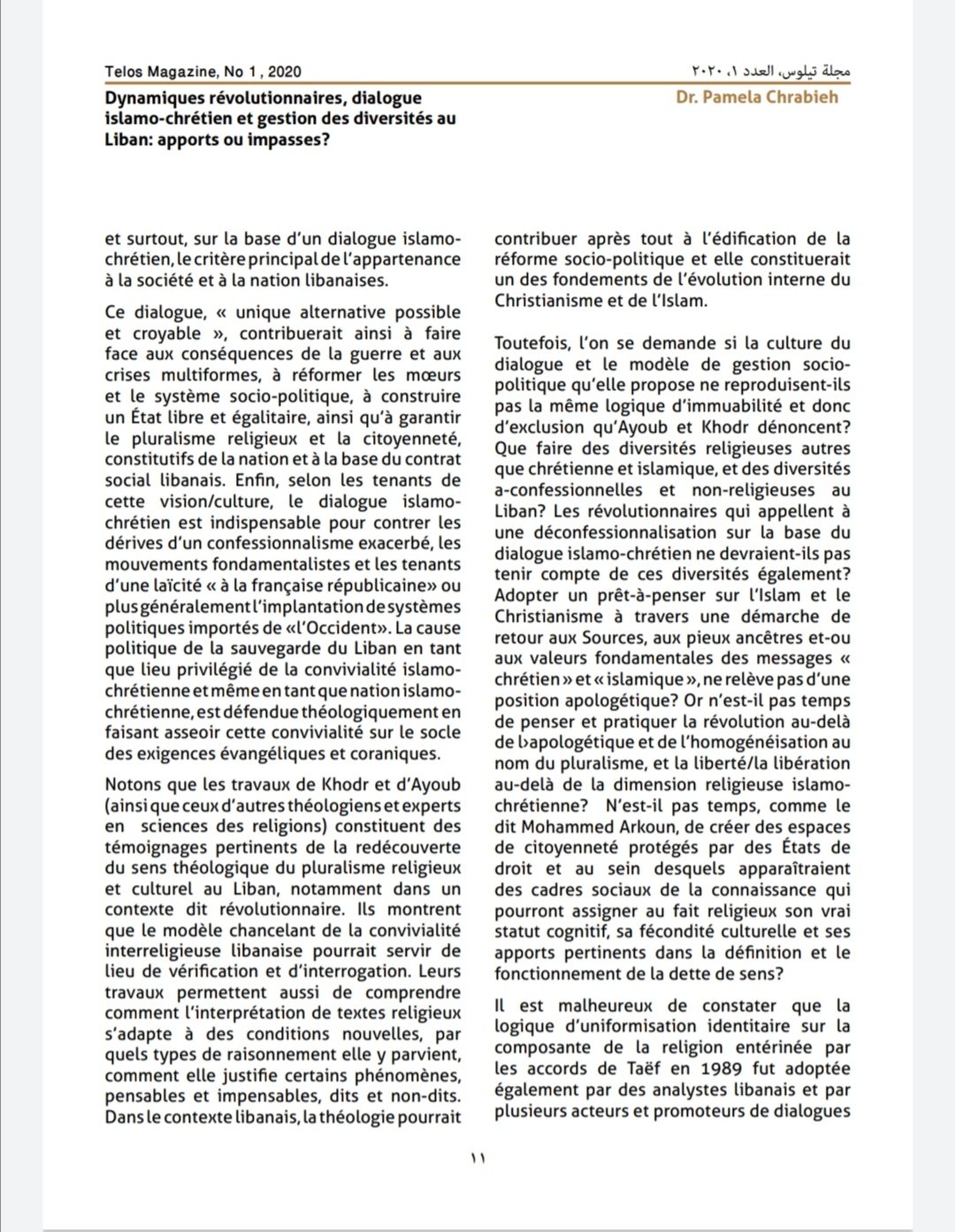Par Dr. Pamela Chrabieh, Article publié dans Telos Magazine, no. 1, Juin 2020.