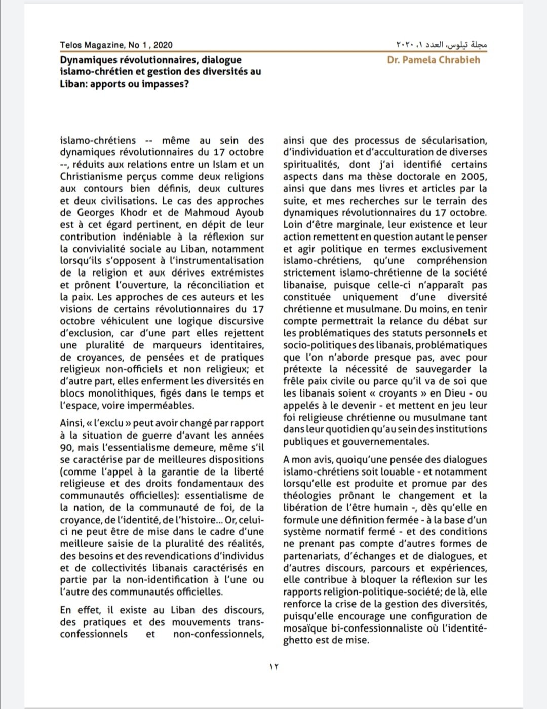 Dynamiques révolutionnaires, dialogue islamo-chrétien et gestion des diversités au Liban: apports ou impasses?