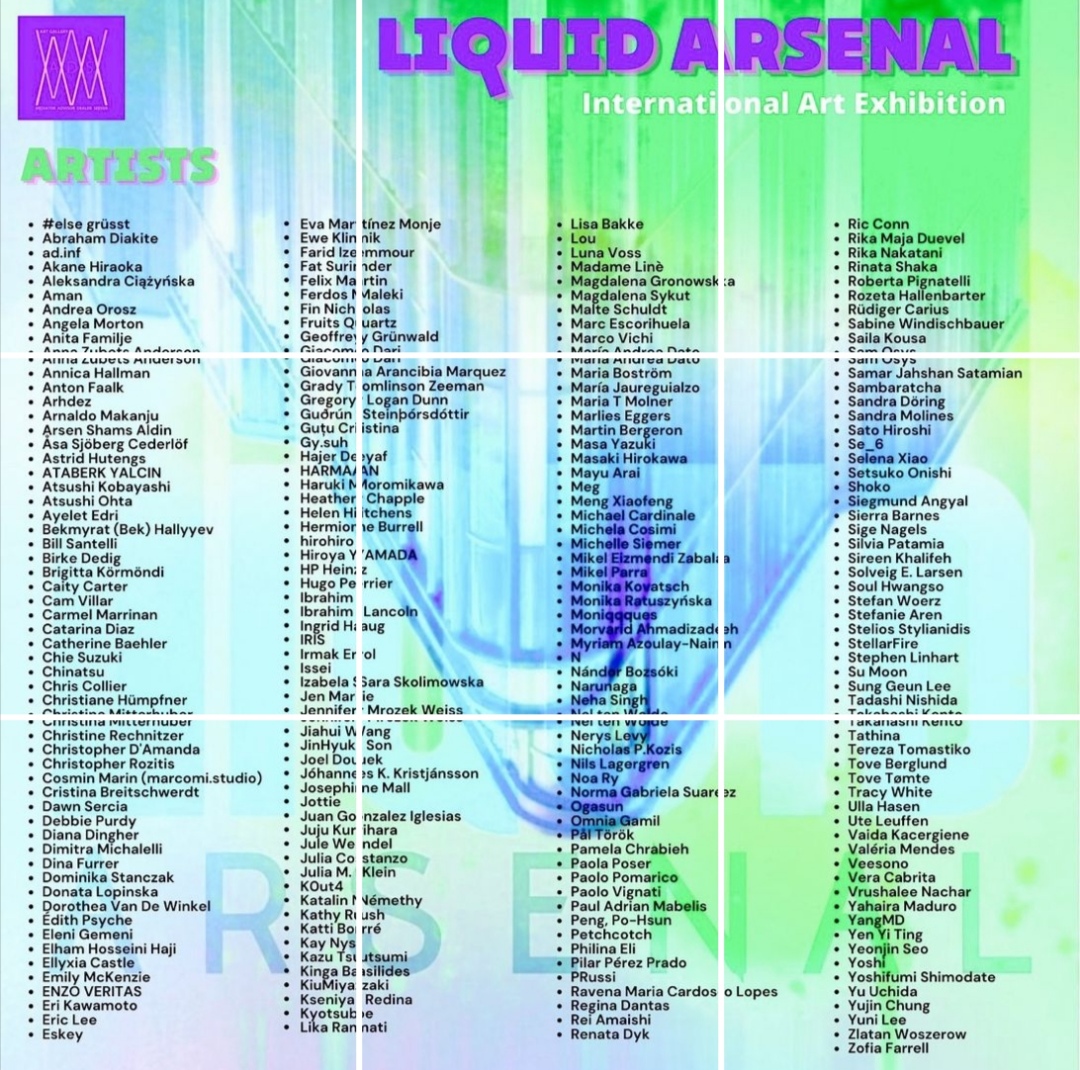 One atom of oxygen and two atoms of hydrogen. H2O, invisible molecule announcer of existence. Water is the mother of the world as we know it, water is the parent of the precious and imperceptible spark of life. From the primordial soup came to light the first unicellular living beings – probably bacteria -, from the amniotic fluid we feel protected until the day we come to light. Water, water and more water. On the other hand, that transparent liquid attracts us, its sight inspires ancestral reminiscences, its fresh and wet nature invites us to immerse ourselves in the dense and clear fluid. The enchanted charm of water bewitches us, enchants and lulls us with its wave motion and, making us resonate in us melodies from the instinctive flavor, evokes innate stimuli of a time that was. And so it is that our whole existence is based on this small molecule, on these imperceptible hydrogen bonds that form, break and reform in milliseconds, making water a “dynamic” substance with unique characteristics and properties. We are attracted to water, we are composed of water, we live with the need to assimilate water. Tasteless, colorless and odorless fluid that carries with it the breath of life and hope. Water is inside and outside of us and has permeated our lives – and our thinking – since the dawn of civilization. Pantha Rei, is one of the most famous aphorisms attributed to the Greek philosopher Heraclitus and it is no coincidence that, to explain the philosophical maxim, the image of water comes to help. “Everything flows”, you can not descend twice in the same river and you can not touch twice a mortal substance in the same state, but because of the impetuosity and speed of change it disperses and collects, comes and goes. The predominance of becoming over solid being is a very dated concept, formulated centuries ago by the thinkers of the very first modernity and the predominance of historicity over contemporaneity is nothing but the sign of a predominance of flowing. The fact that fluidity belongs to the human being is indicated both by our biological composition and by the composition of the very society in which we are immersed. Ours is a magmatic world, elusive in its relationships, postmodern in its total absence of the granitic semblance of an ancient world. It is a society in which the solid era of progress has come to an end, in which everything slips and the flow drowns out all persistence, all permanence, all rigidity. Beliefs and ideals become changeable, social ties become extremely fluid and indefinite, the boundaries and coordinates of space-time disappear. We are in the presence of liquid modernity and all we have to do is immerse ourselves in it, letting ourselves be carried away by the flow of eternal becoming. Indefinite boundaries, non-existent in their development in the LAN networks of computers; fluid genders and love; a liquid reality that transforms its roots by reflecting itself in unreality, in the “other” real: that of the internet – and of the Metaverse. A new reality that finds and elaborates its nature in the liquid state of things. M.A.D.S. Gallery with Liquid Arsenal stands as a manifestation of the will to reflect on the concept of “liquidity” and, at the same time, is configured as a sort of walkway between reality – solid and tangible – and unreality – virtual, simulated, non-concrete. Let us let ourselves be carried away by the current of the river, let us wet our limbs and liquefy together with the molecules of water. Let us lose our solid and stubborn beliefs and embrace a variable reality that makes uncertainty its wonder. Liquid Arsenal exhorts an attitude of openness towards all limits, to a way of life that bases its nature in the question, in the discovery and constant assimilation of new elements and new ideas. Art, on the other hand, is perhaps the most suitable language for the achievement of this conduct: not very prone to regulations, excluded from every preconception and every programmed intervention, the artistic epiphany emerges as a magmatic fluid from the inner self of the artist, showing itself to the eyes of the world. Yet, the concept of art has always been correlated with the concept of memory and stability in time, of the solid imprint of the human being in the flow of events. How then, can the gestures of artistic elaboration be considered as the preferred alphabet to tell this new reality? Liquidity does not coincide with absolute oblivion and the negation of all forms: there is the Lete, the river of oblivion, but there is also the Eunoè, Dante’s torrent that flows close to the Lete. The Eunoè is the river of memory, of the indelible past of a lived experience, a fluid trace of the lives that follow one another in our reality. Art, like Eunoè, is a granitic trace of human making and, at the same time, a smoky mirror of the continuous fluidity, of the perpetual flow of our existences and ideals.