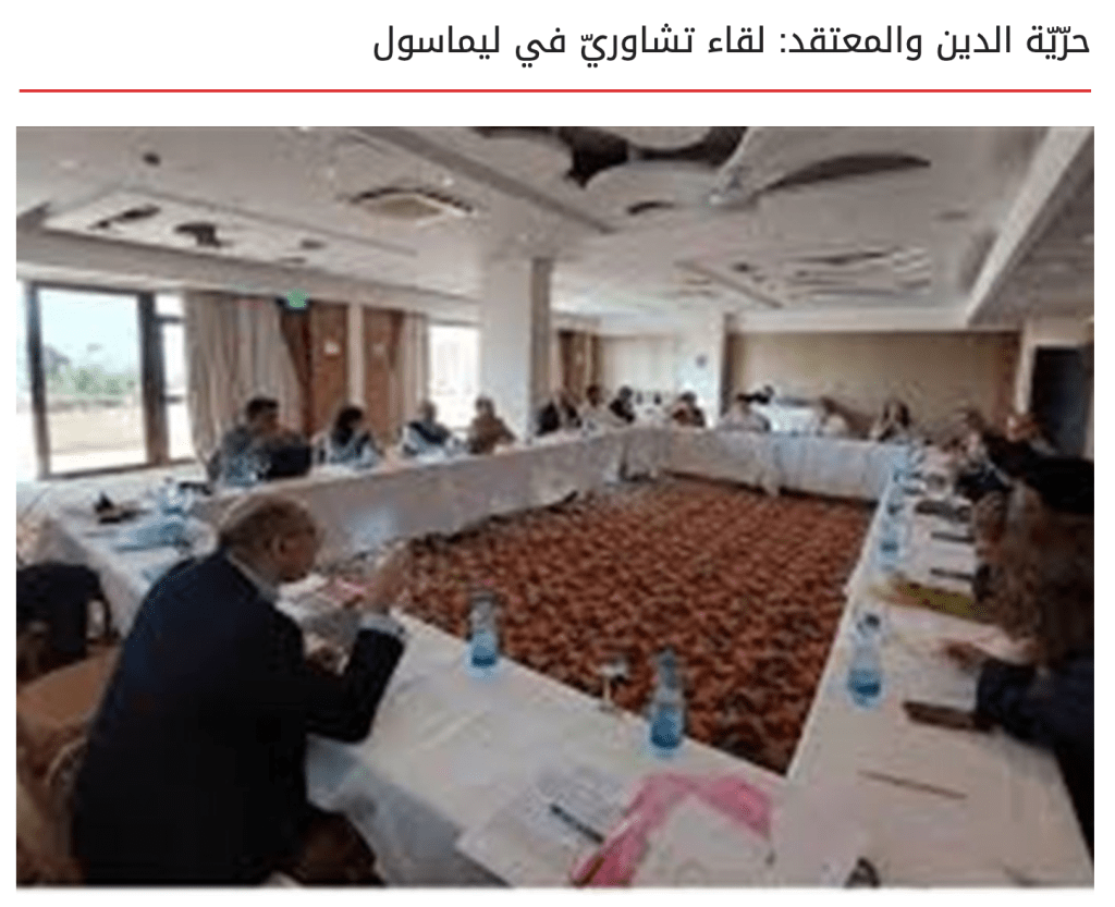 On December 2-3, 2022, the Dar al-Kalima University jointly organized with the Christian Academic Forum for Citizenship in the Arab World (CAFCAW) a consultation entitled “A Southwestern Asian and North African (SWANA) Consultation on FoRB (Freedom of Religion or Belief”. The consultation took place at the Elias Beach Hotel in Limassol-Cyprus, and gathered 20 participants (Christians, Muslims, secular and-or non-religious…) from SWANA (either living in the region or in diaspora), along with European partners. These participants represented civil society organizations, religious-based organizations, universities, national human rights/ women’s rights institutions, and SWANA sectoral bodies.