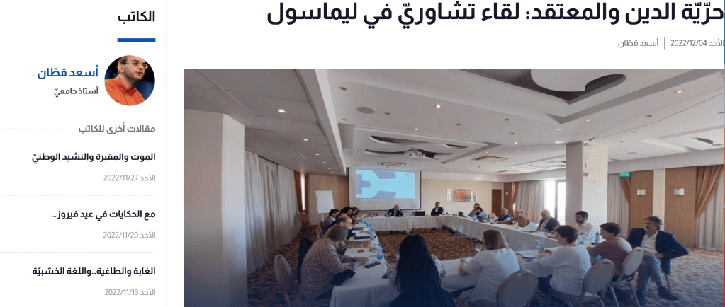 Al Ayyam جريدة_الأيام Dec. 6; Al Quds جريدة_القدس Dec. 6; Telos Magazine Dec 6; Alloubnania Dec. 4; Radiohayah Dec 5; Qudsnet Dec 5; Alhayatp Dec 5; Al Modon Dec 4.