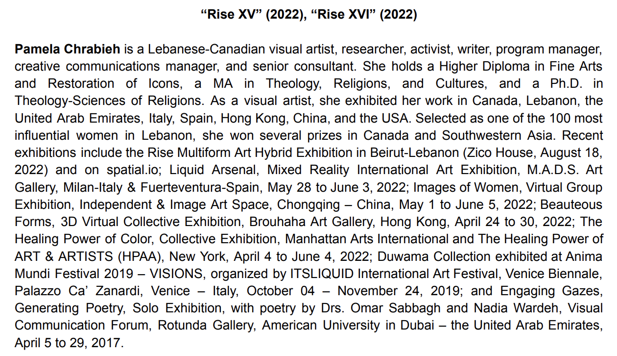Stay tuned for the upcoming Cica Museum – Korea International Symposium for Visual Culture and the “Visual Culture 2023” Exhibition. I will present a talk about iconography gazes and wounded memories. Furthermore, two of my pieces from the “Rise” collection have been selected to be showcased in the exhibition. Truly grateful for this incredible opportunity to share my insights and artwork with such a distinguished audience.