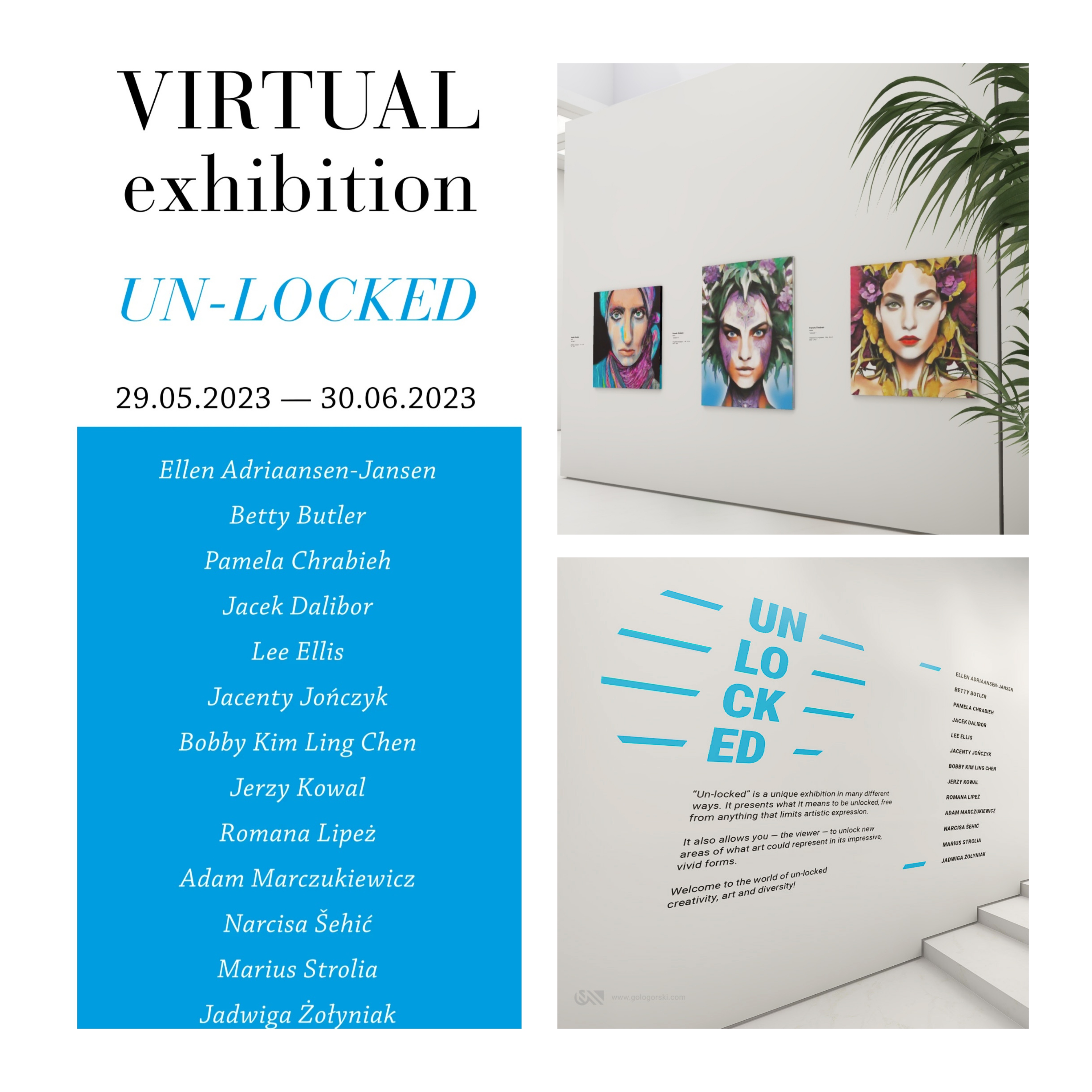 The ‘Un-locked’ virtual exhibition by the Gologorski Gallery in Krakow-Poland is now open and will last until June 30, 2023. I extend my profound appreciation to the gallery for selecting my artworks, and I encourage art enthusiasts to visit the exhibition and immerse themselves in it. Take the time to appreciate the intricate details, the thought-provoking concepts, and the sheer beauty that each artist has poured into their work.