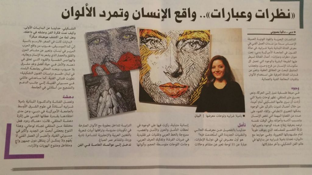 نظرات وعبارات… واقع الإنسان وتمرد الألوان, Press Interview, By Dalia Bassyouni, Al Bayan.ae, 5 senses-Culture Section, UAE, 05-05-2017 (in Arabic).