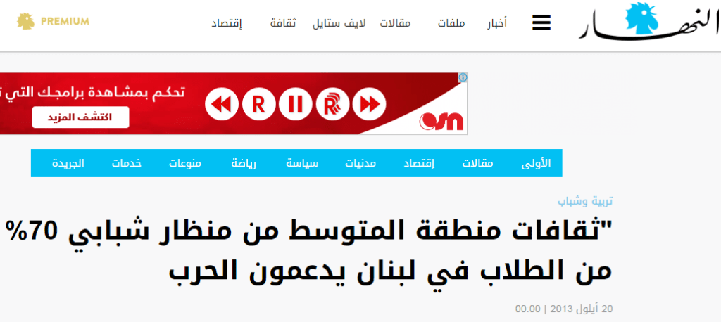 “Le rôle des médias dans la dynamique communautaire au Liban”, Online Interview, By Julien Saada, Lebanese Elections Project 2009, Raoul Dandurand Chair, University of Quebec in Montreal, 12-06-2009.