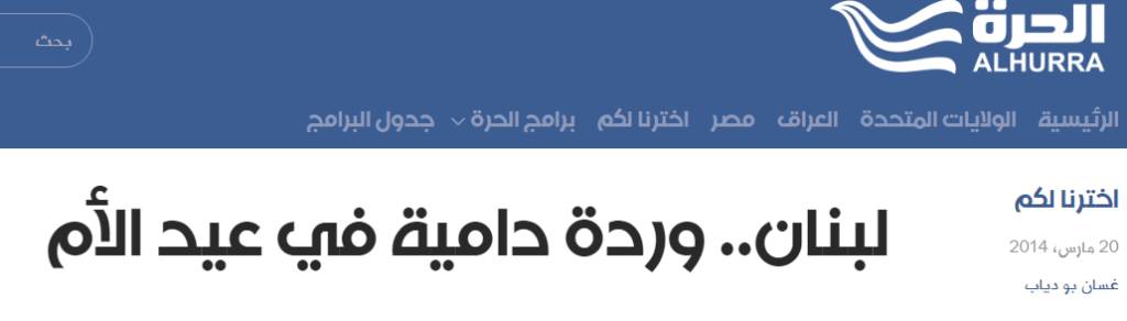 “Dr. Pamela Chrabieh on Mothers’ Day in Lebanon’, Press Interview, By Dr. Ghassan Bou Diab, Al-Hurra, Lebanon, 21-03-2014 (in Arabic).