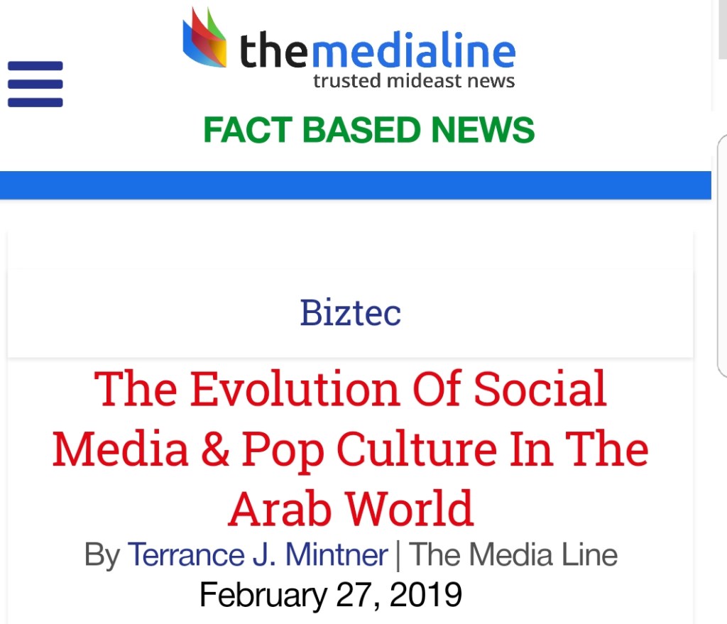The Evolution of Social Media and Pop Culture in the Arab World, Interview by Terrance Mintner, The Medialine, New York – USA, February 27, 2019.
