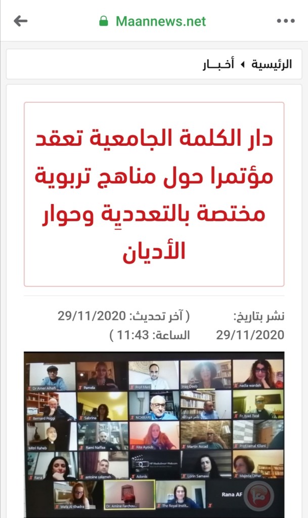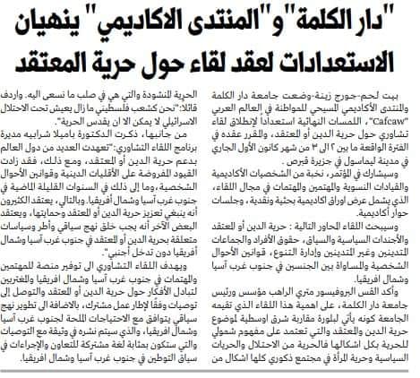 جريدة الأيام: دار الكلمة تنظم حواراً أكاديمياً وآخر حول حرية المعتقد – 04-11-2022