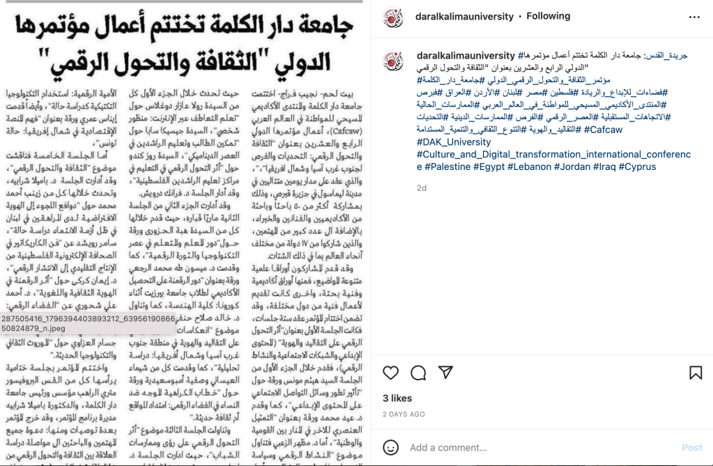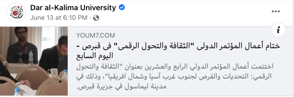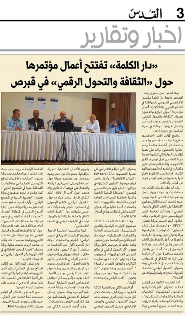 Dar al-Kalima University and Cafcaw 24th International Conference on Culture and Digital Transformation, Limassol-Cyprus, June 10-11, 2022 – Press Coverage.